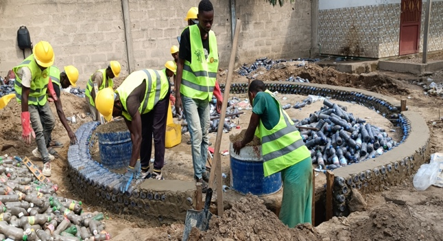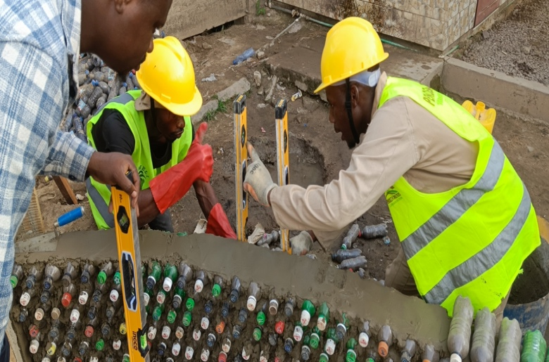 Construction: Building using eco-brick.